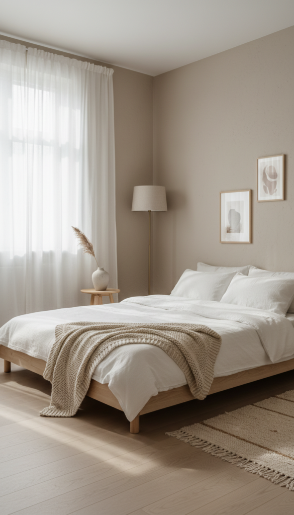 Beige walls are often misunderstood. Many people think beige is dull or outdated, which is a big myth. In minimalist bedrooms, beige acts like a calm canvas rather than a boring background.