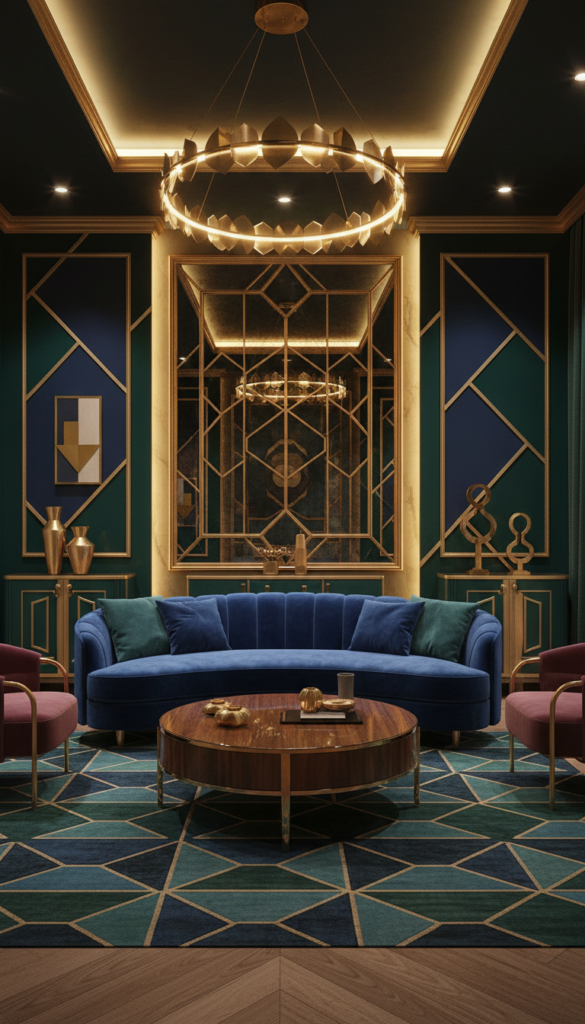 - Use wallpaper with geometric gold patterns.