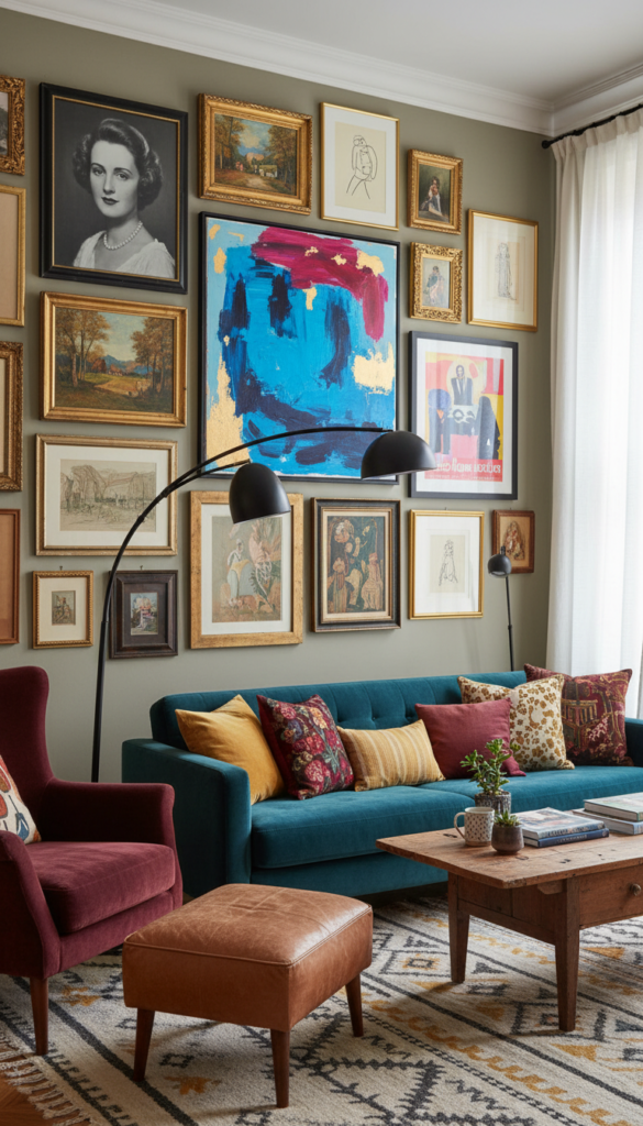 - Create a gallery wall with mismatched frames.