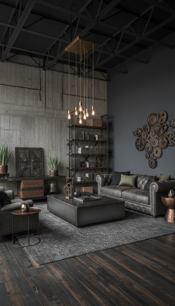 Edgy and raw, the industrial aesthetic celebrates exposed structures. It mixes metal, wood, and darker tones for a masculine-meets-chic vibe.