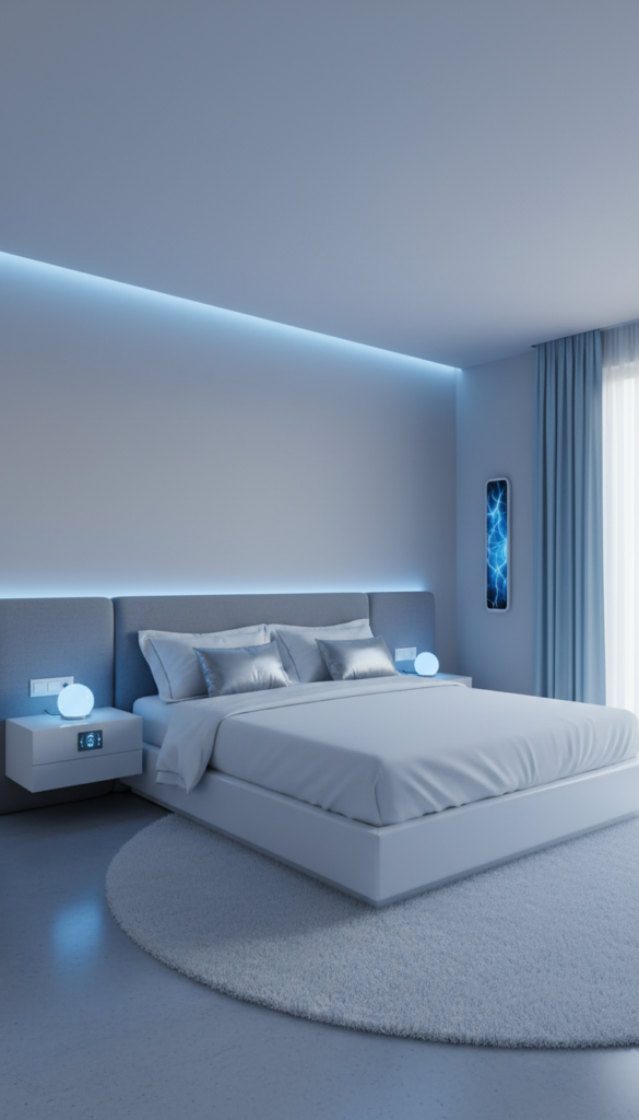 For a truly modern, tech-forward aesthetic, skip the traditional lamp altogether. Install smart LED strips behind your headboard or under the bed frame. This creates a diffused, hidden glow that can change color to suit your mood, offering a sleek, futuristic ambiance.