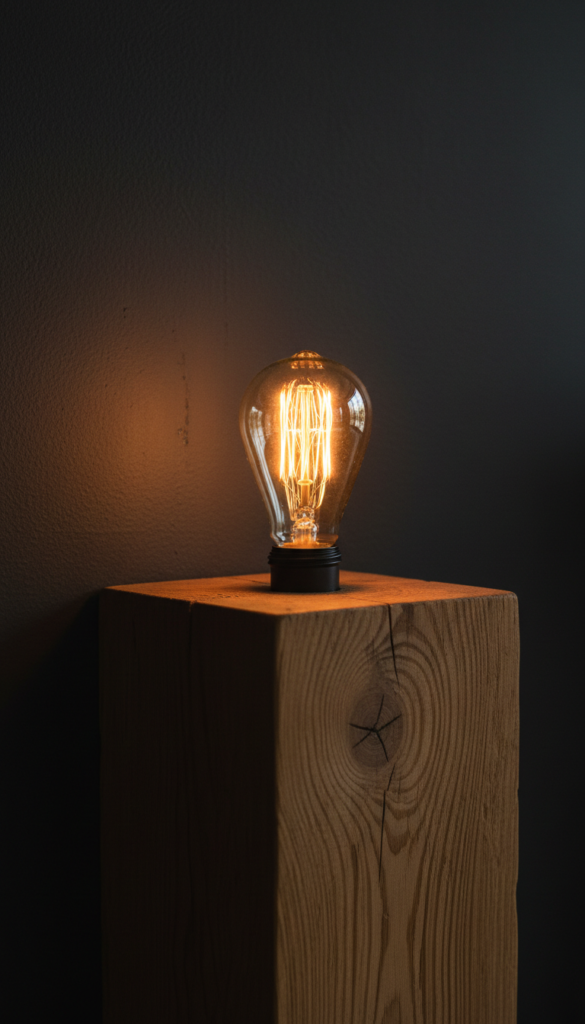 Strip away the shade and let the bulb shine. Industrial aesthetic styling often features exposed Edison bulbs on simple metal stands or wooden blocks. The warm, amber glow of the filament creates an instant cozy atmosphere, while the raw materials add a masculine, edgy touch to the decor.