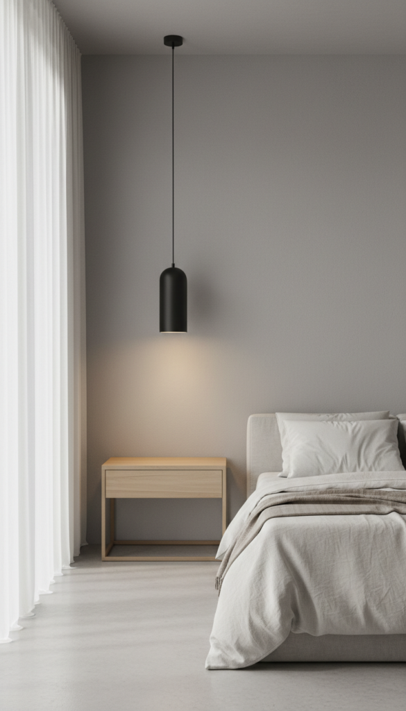 Save precious nightstand surface area by installing hanging pendant lights on either side of the bed. This styling choice draws the eye upward, emphasizing the height of the room. It frees up space for your books and water glass while providing a sleek, hotel-like aesthetic.