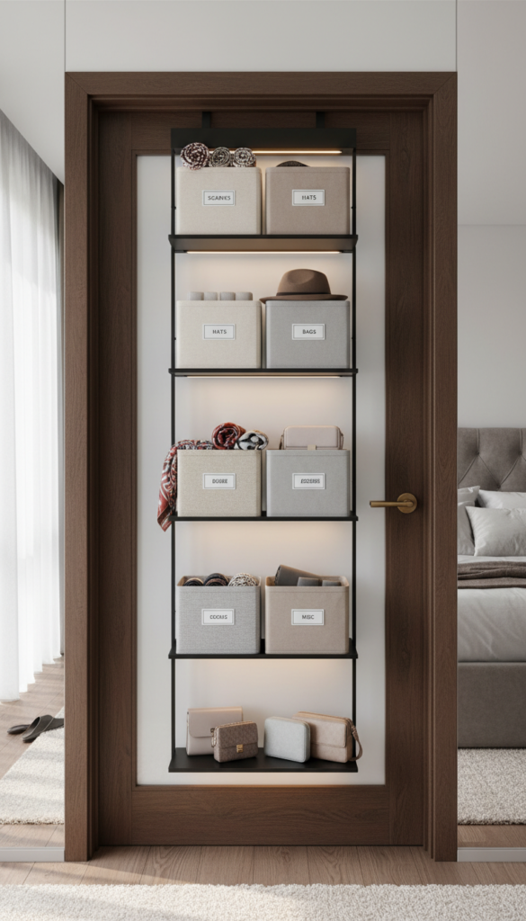 Often overlooked, the back of your bedroom door is prime real estate. Over-the-door pantry organizers or shelving units can hold bags, shoes, or accessories, freeing up precious closet space.