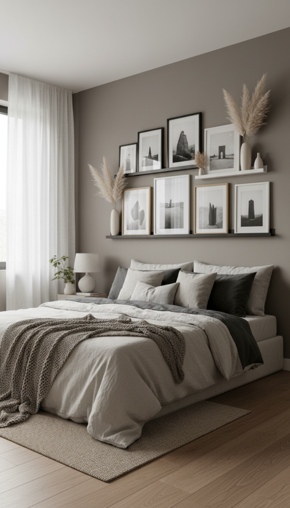 Replace a traditional headboard or hang art above your bed with a long picture ledge. This creates a gallery feel and allows you to swap out artwork or photos whenever the mood strikes without making new holes in the wall.