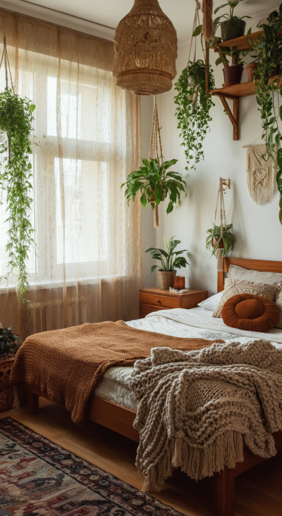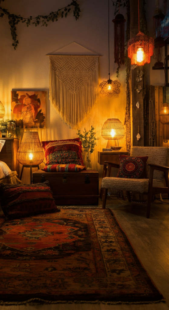 Add a macramé wall hanging, a vintage leather chair, and plenty of greenery to complete the boho vibe. The idea is to mix and match, creating a space that feels personal and full of life.