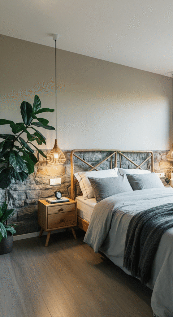 To complement the natural theme, choose neutral colors, add houseplants, and consider a wooden bed frame or a reclaimed wood headboard. The goal is to create a serene environment that feels connected to nature.