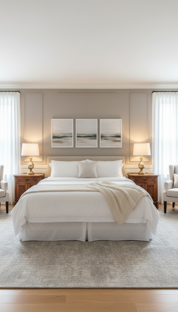 Neutral tones are the backbone of classic bedroom aesthetics.
