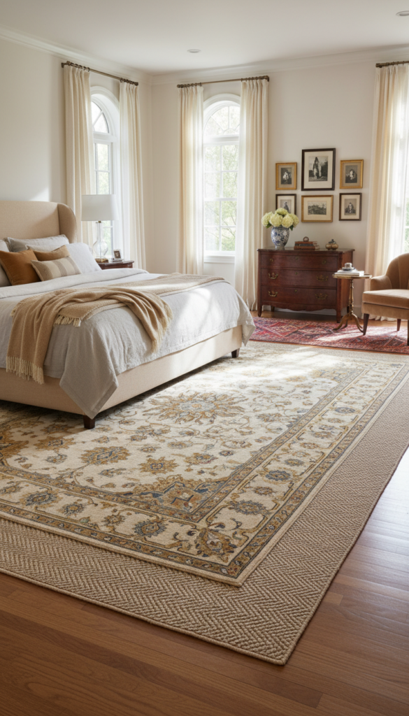 In big rooms, layering neutrals adds depth without overwhelming the space.