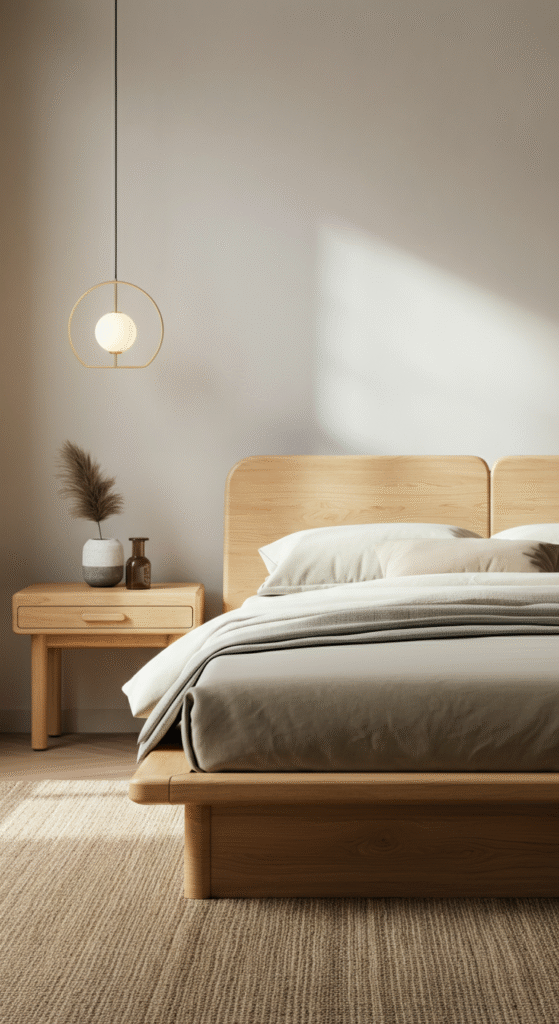 Furniture in a Zara Home inspired boho bedroom should feel grounded and timeless. Natural wood pieces with soft finishes work best, especially in light to medium tones.