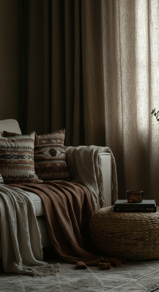Imagine walking into your living room and instantly feeling a wave of calm wash over you — not because you’ve redecorated with sterile minimalist whites, but because the space invites you into a gentle embrace of textures, natural materials, and soulful layers.