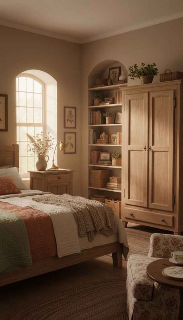 A true cottagecore bedroom does not look finished. It feels like it is still being lived in. And honestly, that is what makes it beautiful.