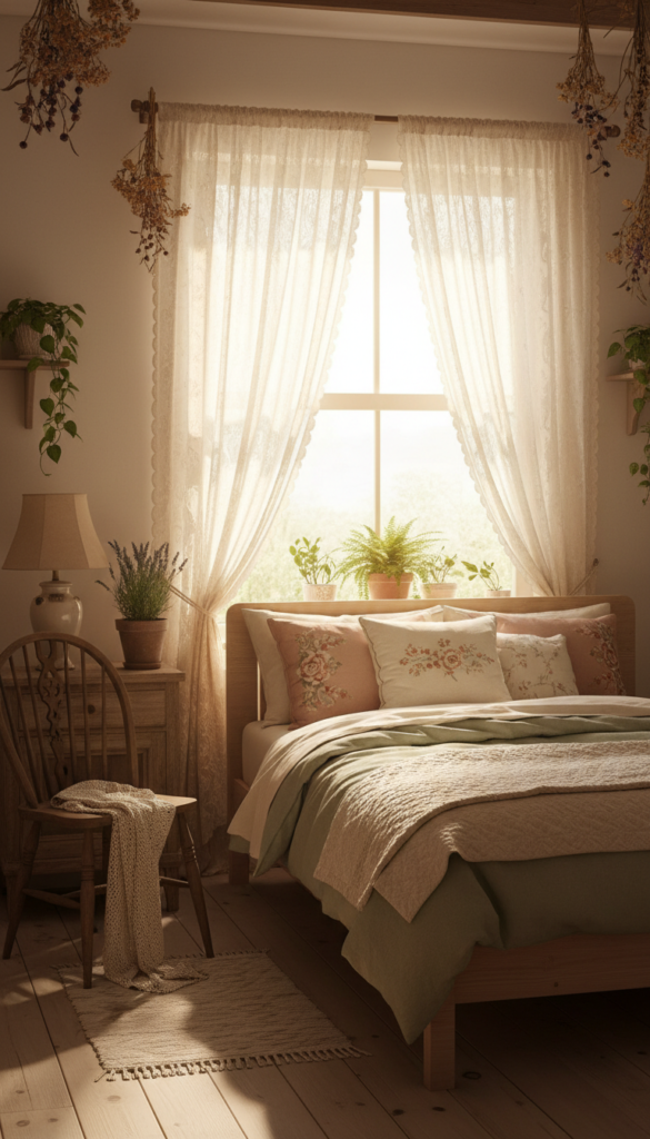 Place the bed near the window if possible, creating a gentle morning glow that enhances the cottagecore mood.