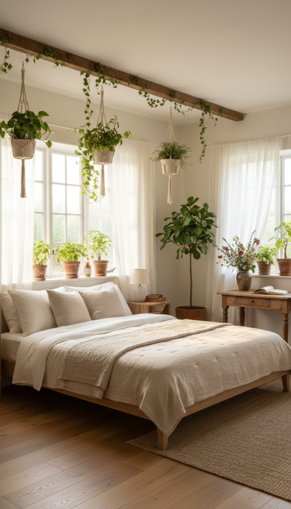 3. Neutral Cottagecore Bedroom with Natural Textures