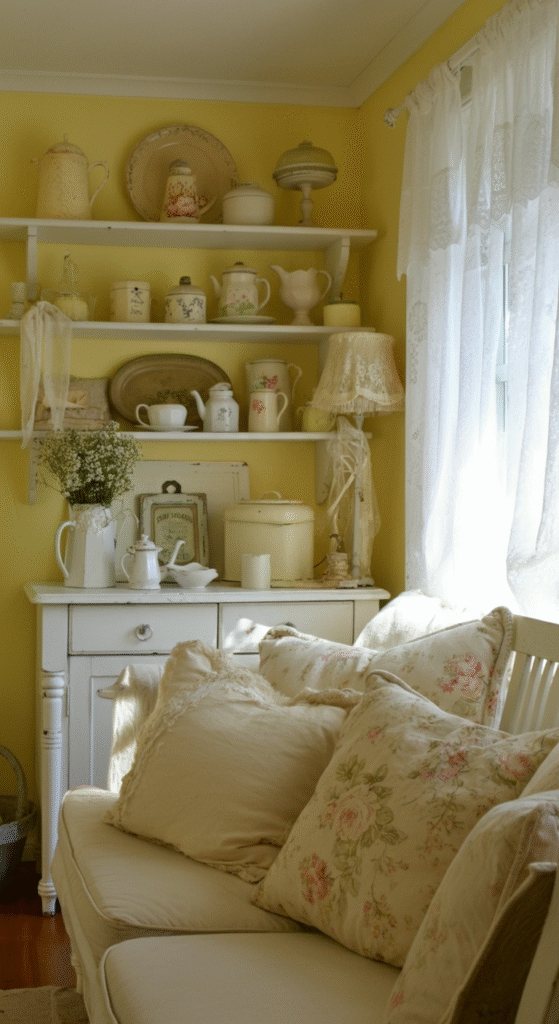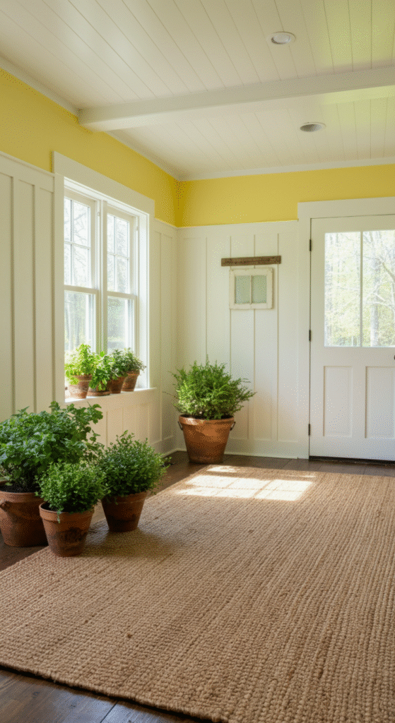 Use muted or creamy shades of yellow and balance them with soft whites, natural textures, and rustic décor elements.