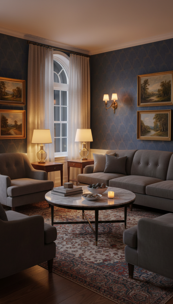 Fluorescent overhead lighting is the enemy of cozy. Vintage spaces rely on warm, ambient light sources like table lamps and sconces.