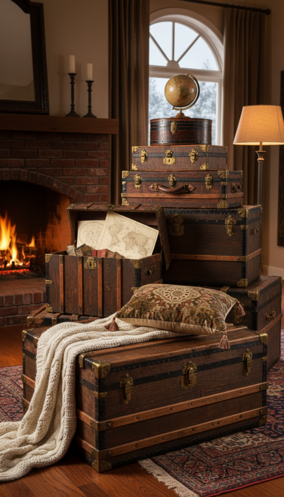 6. Use a Wooden Trunk for Storage
