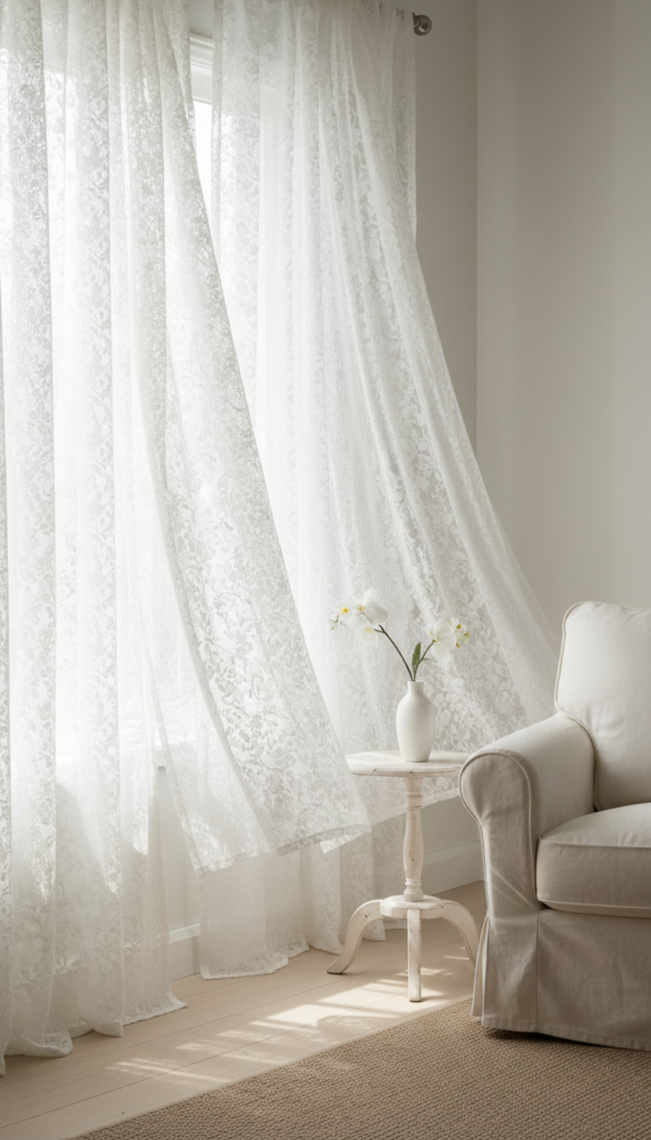 7. Hang Lace Curtains