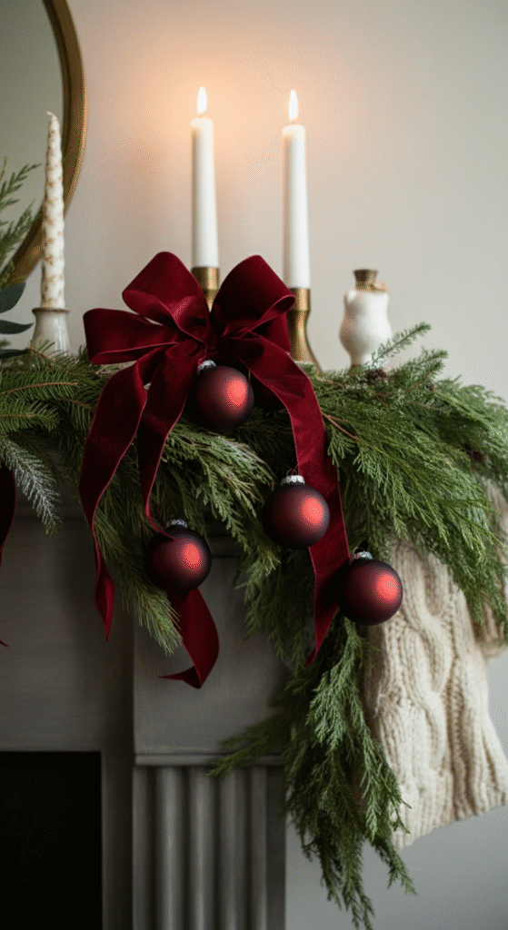 Avoid the common myth that “more red equals more festive.” Overusing red can make the mantle look heavy and cluttered.