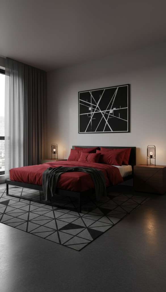 For a sleek, masculine, or edgy aesthetic, combine bright crimson with sharp black accents and clean lines.