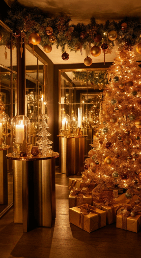 Balance metallic elements with neutral tones. Use them sparingly in accents like ornaments, table settings, or a statement mirror to add glamour without overwhelming the space.