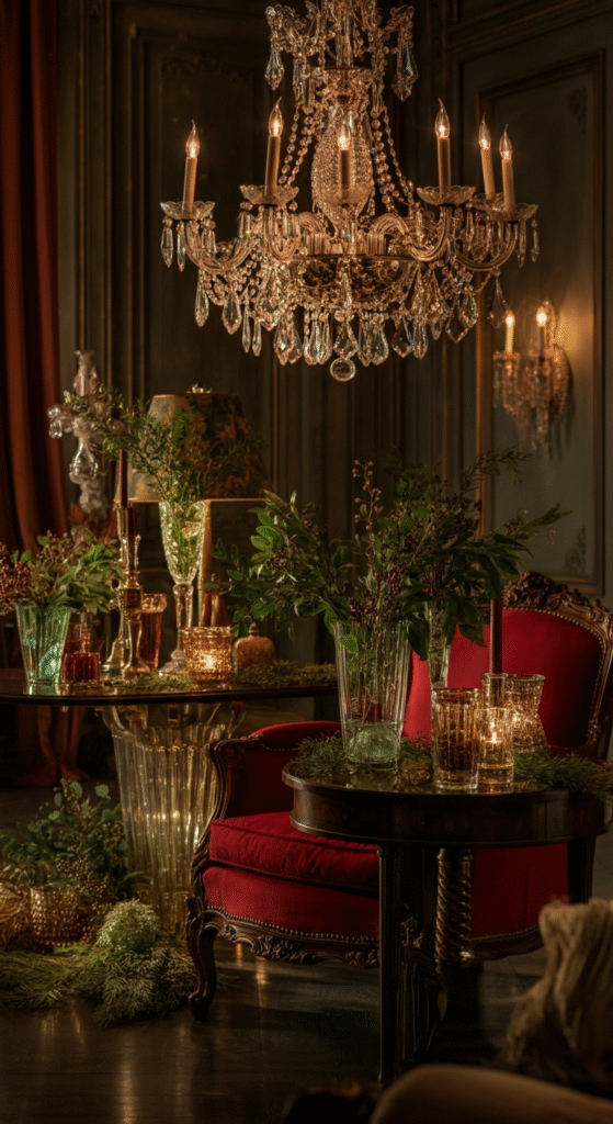 For those who appreciate the finer details, crystal and glass accents are a must-have for a glamorous Christmas room. Crystal chandeliers, glass ornamented trees, and delicate glass vases filled with festive greenery can transform your space into a sophisticated winter palace.