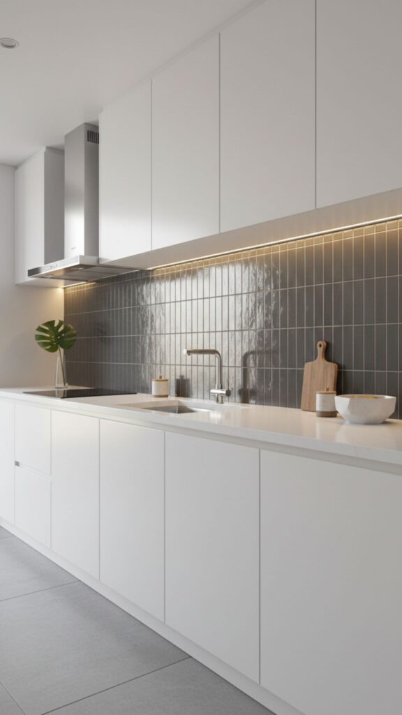 Under-cabinet LED lighting is fantastic for high-gloss tiles. It highlights the texture and shine of the backsplash, turning your wall into a glowing feature.