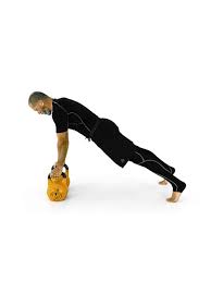 - Get in a plank position holding two kettlebells.