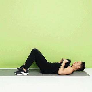 - Lie on your back, and hold one kettlebell with both hands.