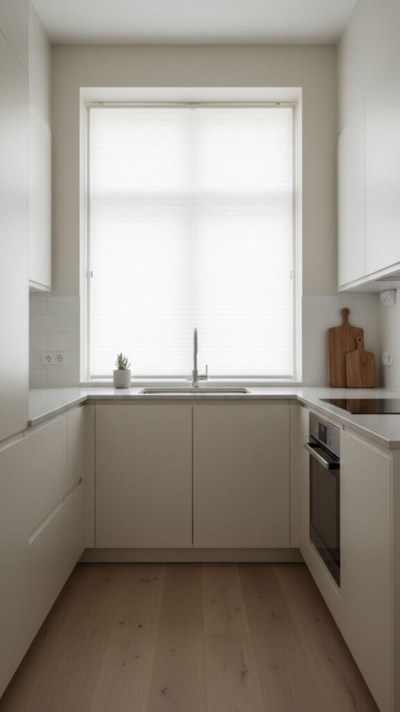 You can, but they often take up more visual and physical space than blinds. If you love curtains, opt for sheer, lightweight panels and hang the rod high above the window frame to draw the eye up. Avoid heavy drapes which can make a small kitchen feel boxy.