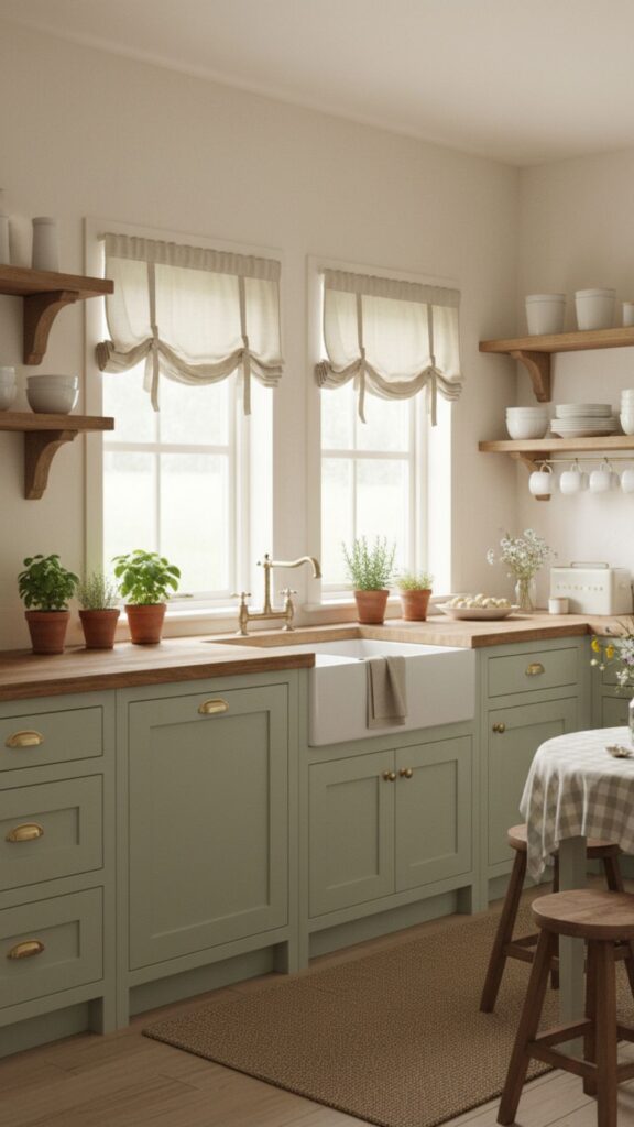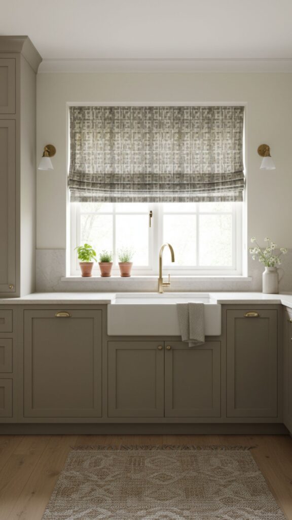 A small kitchen can handle patterns if they are subtle. A gentle stripe or small geometric print on a Roman shade adds depth without overwhelming the space.