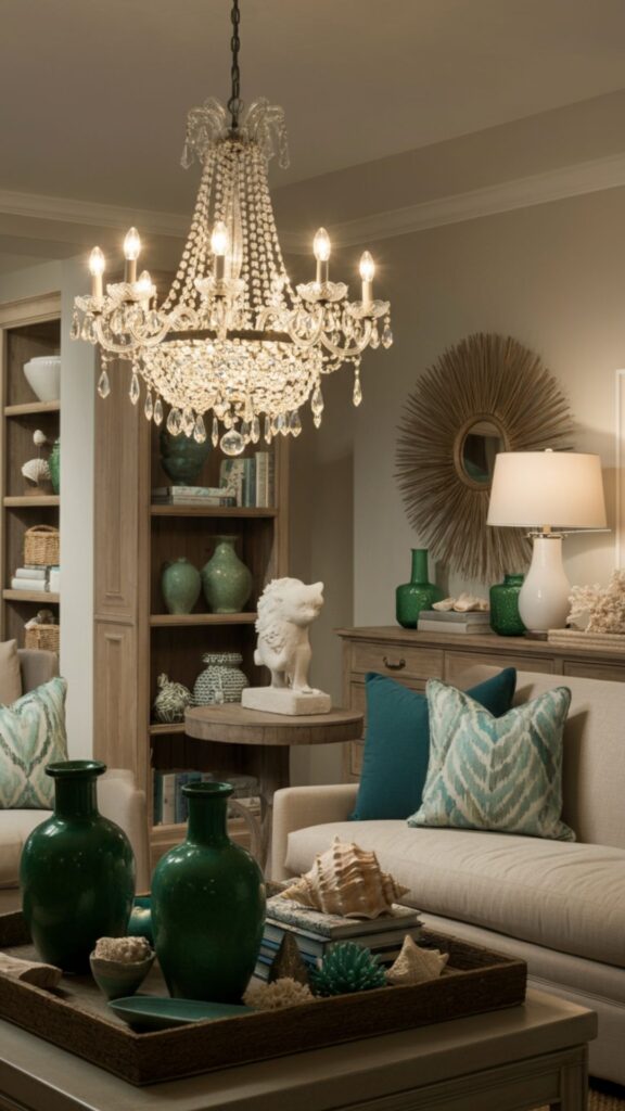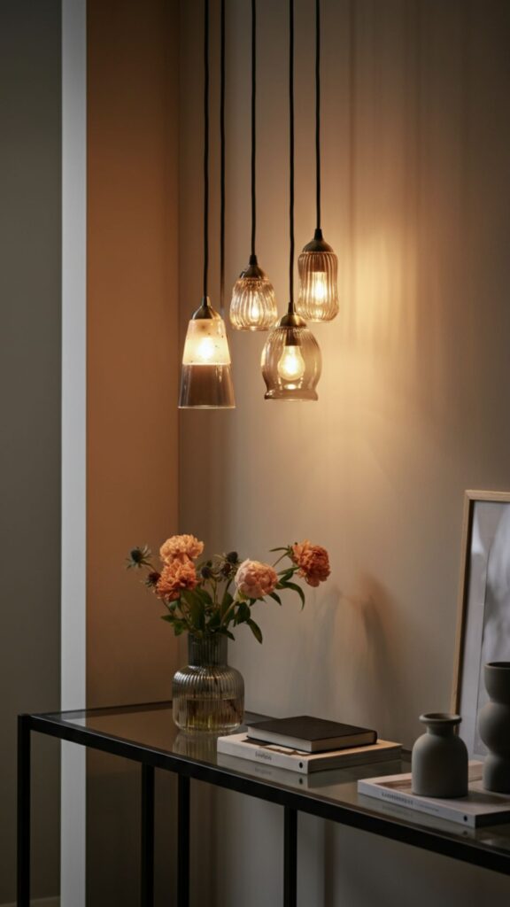 While often found over kitchen islands, small pendant lights can be a stylish and unexpected addition to a living room. Instead of a single, large chandelier, consider hanging a cluster of small pendants in a corner or a pair of pendants over a console table.