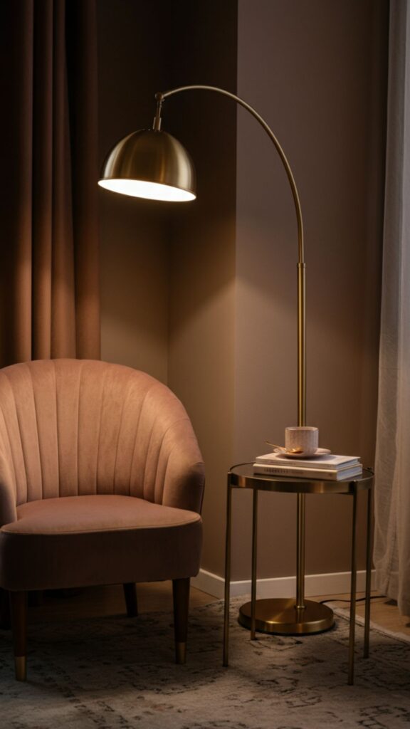 Consider an arc floor lamp to make a dramatic statement, its long arm reaching over a coffee table or seating area to provide light from an unexpected angle. For a more traditional approach, a tripod floor lamp adds a touch of mid-century modern flair and structural interest. Placing a floor lamp in a corner can also create an illusion of more space.