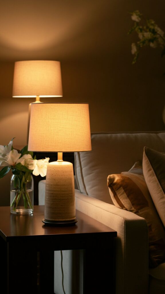 Table lamps are essential for creating intimate, cozy zones within your larger living room. Placed on end tables, consoles, or buffets, they provide soft, localized light that encourages relaxation and conversation. They are the easiest way to add a personal and decorative touch.