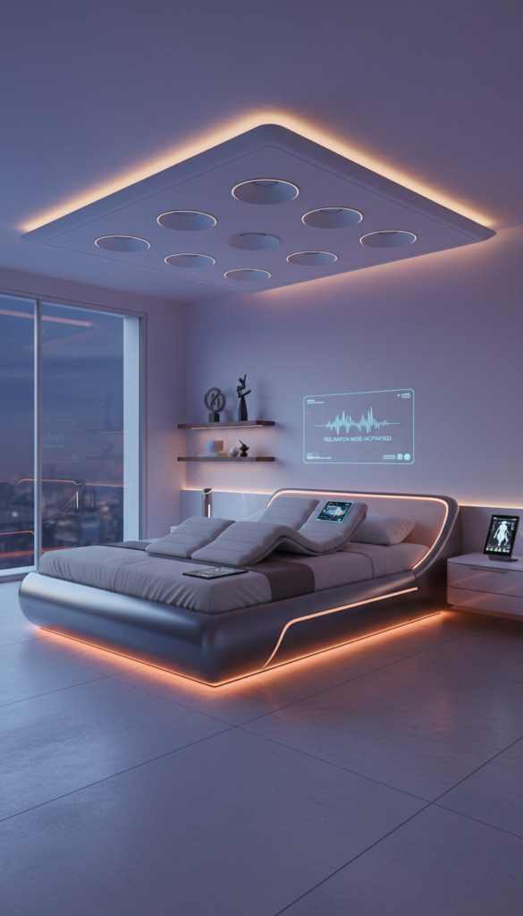 Modern luxury bedrooms blend style with advanced technology. Incorporate smart home devices that can control lighting, temperature, and even your sleep settings.