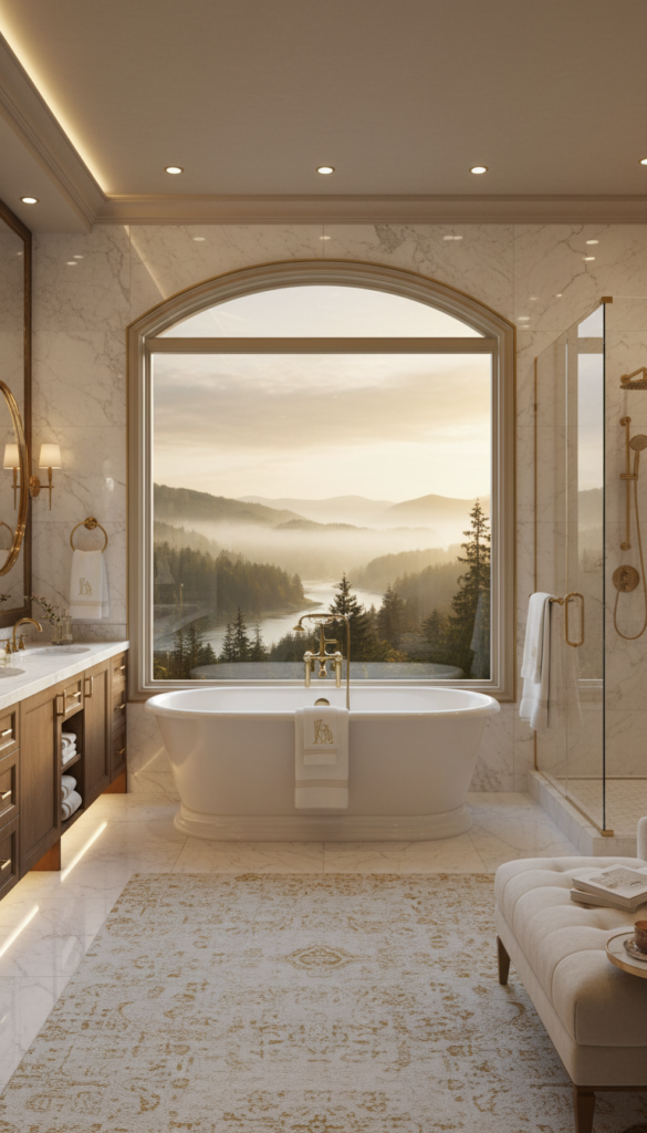 Consider adding unique touches like mood lighting around the mirror, heated floors, or a towel warmer to complete the high-end feel of your personal retreat.