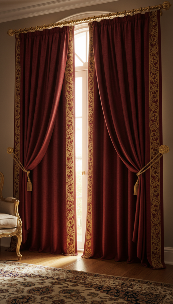 For added functionality, choose blackout curtains that allow you to control the amount of light entering the room. Incorporate gold or metallic finishes in the curtain rods for a more lavish look.