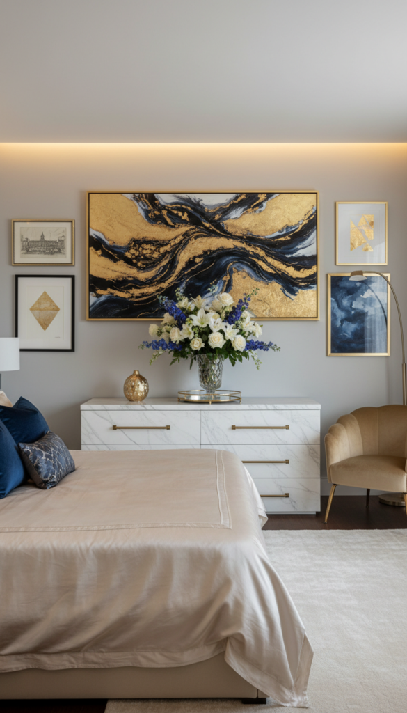 Art is an essential component of any luxury space. Choose statement art pieces, such as large-scale paintings, sculptures, or custom wall hangings, to create a sophisticated atmosphere. When selecting artwork, focus on pieces that complement the room’s color palette and aesthetic.