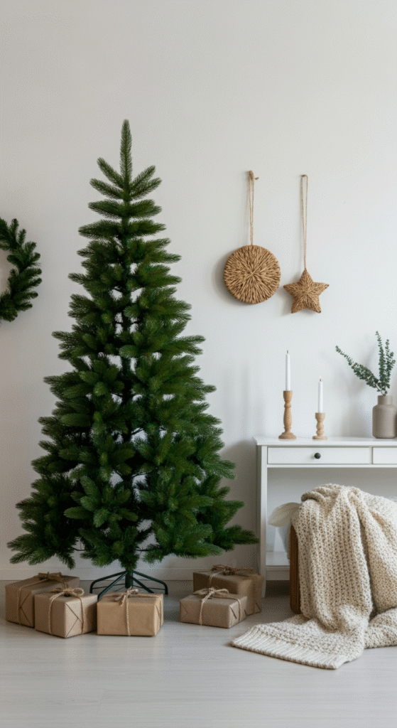A minimalist tree allows your ornaments to breathe rather than crowding them. The key lies in choosing slim pine variations or Scandinavian-style sparse branch trees.