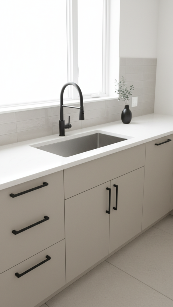 - Swap your sink faucet for a high-arc matte black pull-down model.