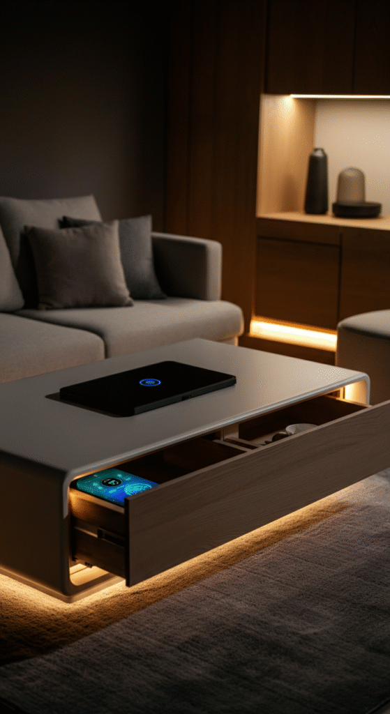 Picture this: a coffee table that wirelessly charges your phone while storing remotes and magazines underneath.