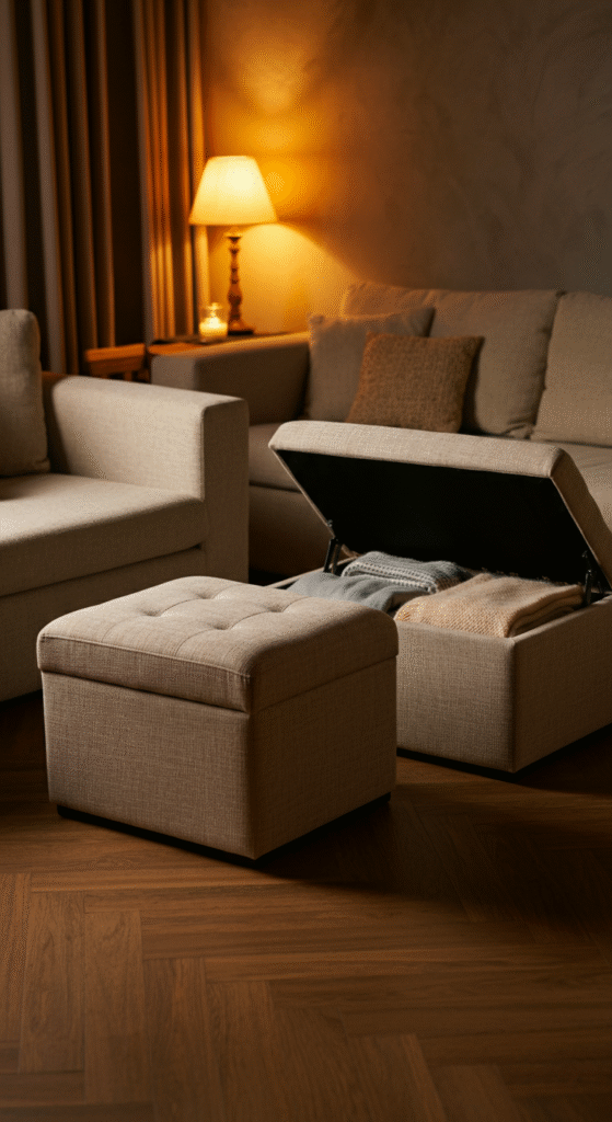 2. Hidden Storage Ottomans: The Double-Duty Hero