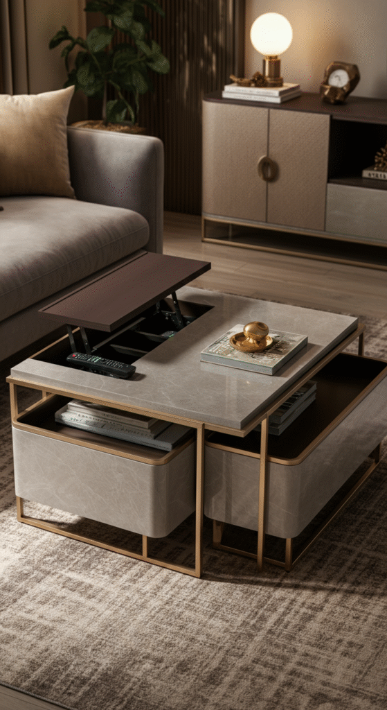 If not, it’s time to rethink. Whether it’s floating shelves, smart coffee tables, or modular walls, the right storage turns your space from cluttered to curated.