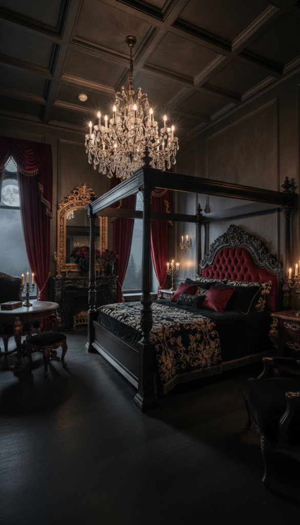 This style merges historical elegance with a dark edge. It utilizes ornate details and rich fabrics to create a space that feels regal yet mysterious.