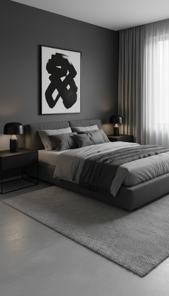 - Layer bedding in slate, charcoal, and jet black.