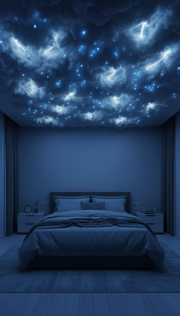 Create a storm inside your room. Cotton cloud ceilings with embedded LEDs can simulate lightning storms or a radioactive sky, adding texture to the often-ignored “fifth wall.”