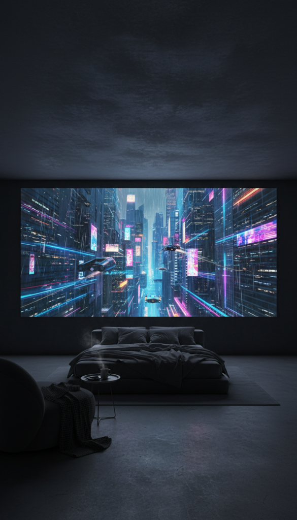 Creating a cyberpunk bedroom is about layering light, texture, and technology. It’s a balance between the chaotic energy of a neon city and the cozy seclusion of a personal hideout.