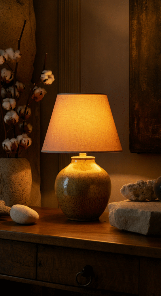 10. Handcrafted Ceramic Lamp: A Timeless Rustic Accent