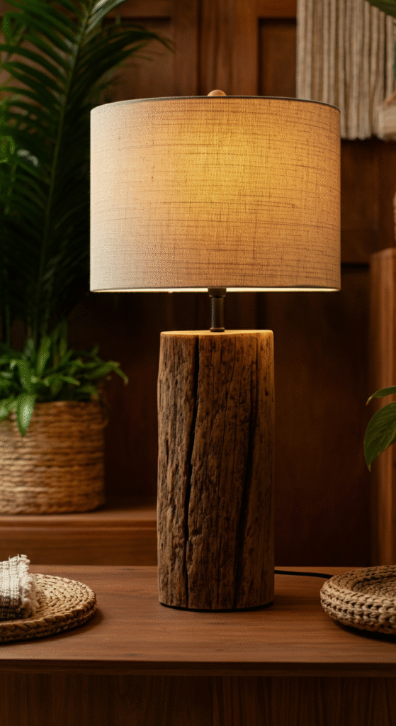 4. Wooden Log Lamp: A Raw, Earthy Touch