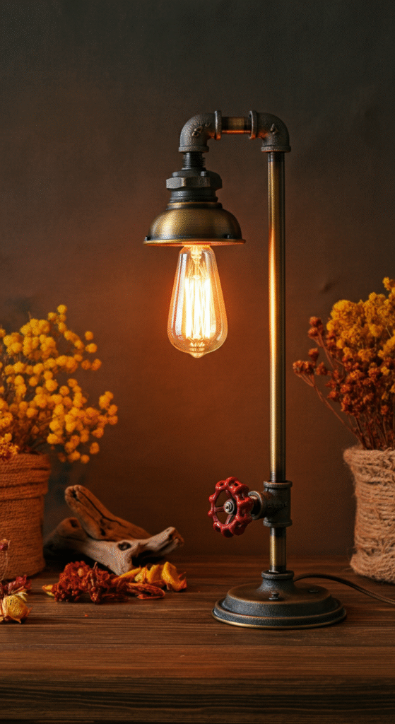 If you’re going for a rustic industrial look, a vintage metal lamp is a perfect choice. These lamps often feature exposed metal pipes or aged brass, giving them an antique, timeworn appeal. The matte finish and aged look of the metal enhances the rustic aesthetic, making them an eye-catching addition to your living room.